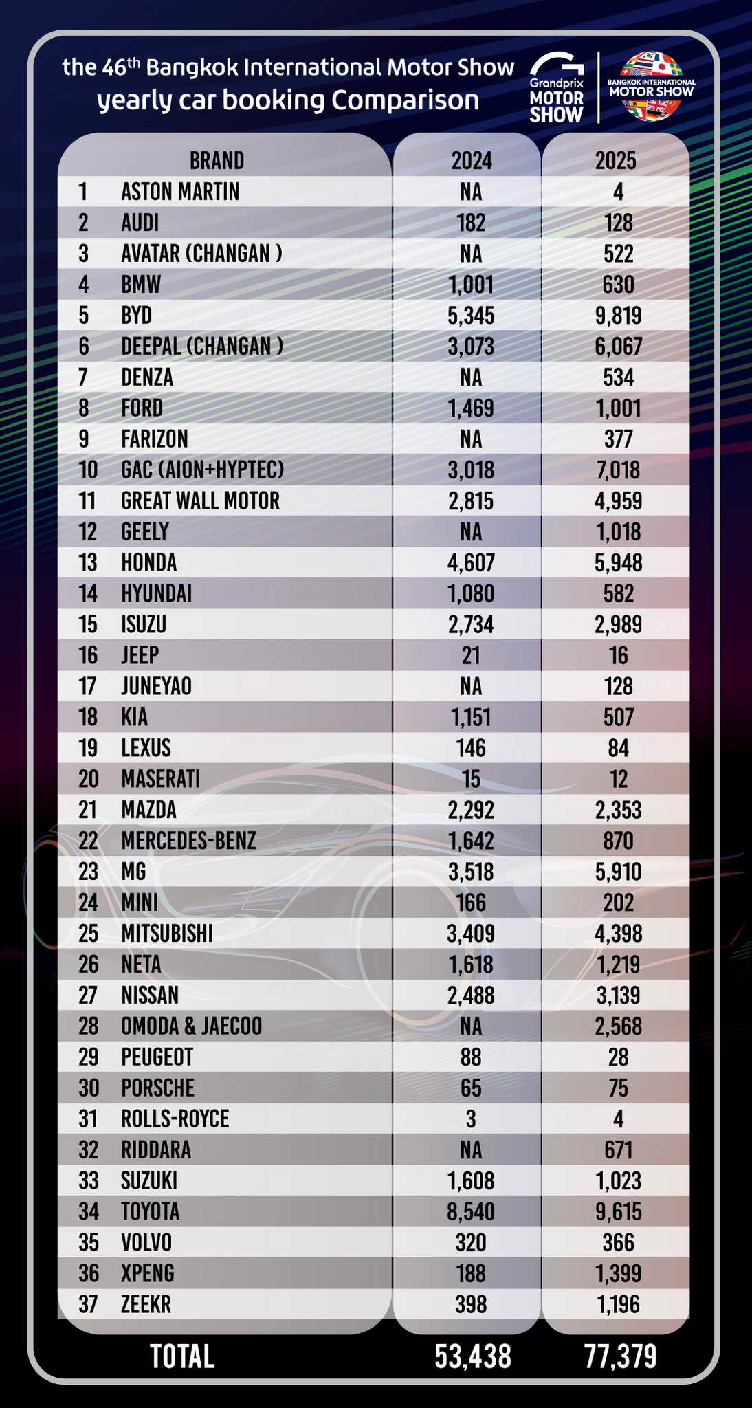 The organizers would like to extend their heartfelt thanks to all the companies that participated in this year’s Bangkok International Motor Show, whose support and collaboration played a vital role in making the event a resounding success. This continued commitment affirms the show’s position as Thailand’s premier automotive exhibition, and one of the most prominent in the ASEAN region—on par with leading international motor shows around the world.