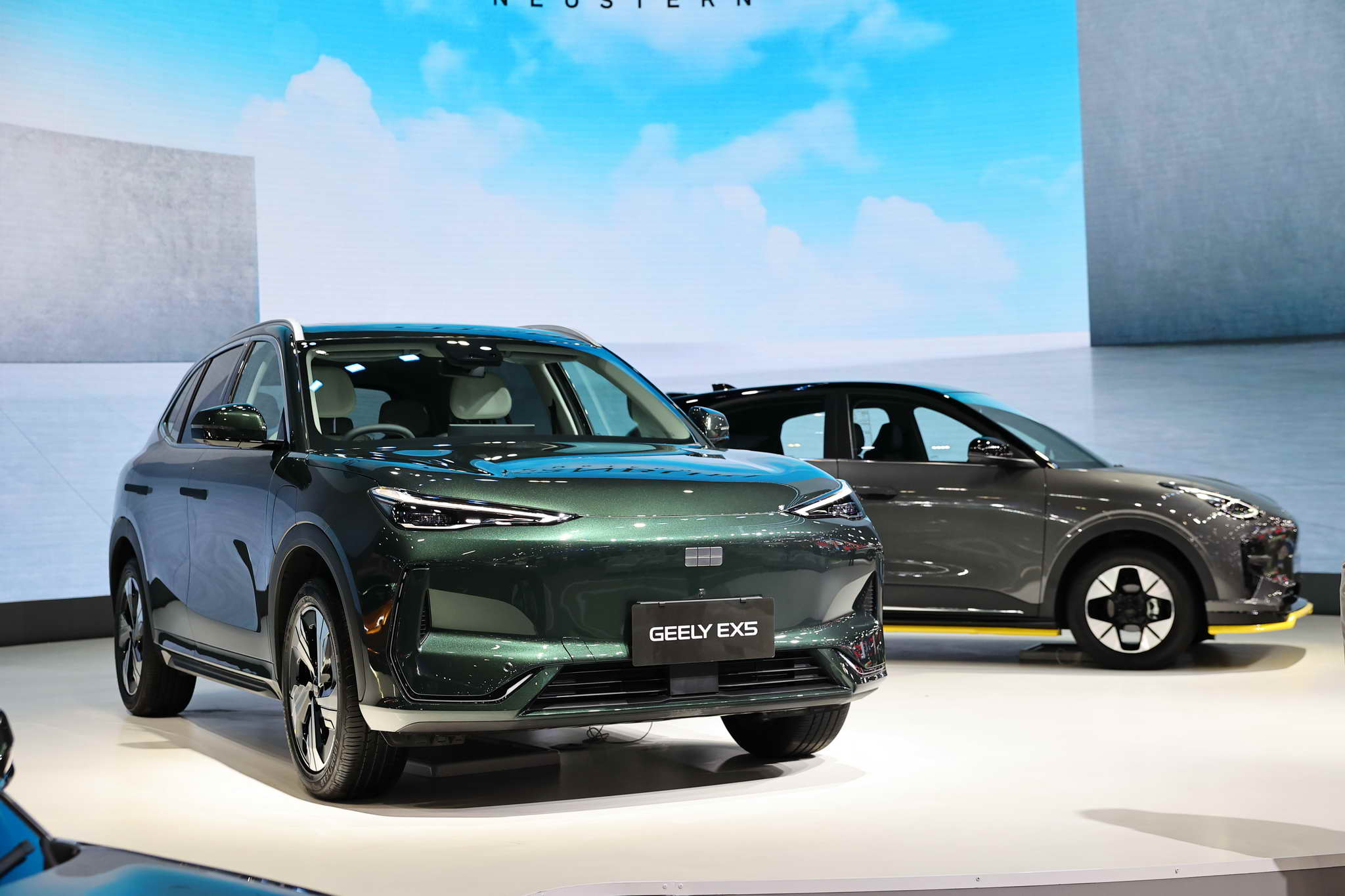 A key highlight of the GEELY booth is the GEELY EX5 MAX+, which builds upon the innovations of the standard EX5. It features the new 68.39 kWh Short Blade Battery, increasing the range to a maximum of 525 kilometers (NEDC standard). The model stands out with 19-inch alloy wheels, Goodyear tires, and a new premium ‘Moss Green’ exterior color.