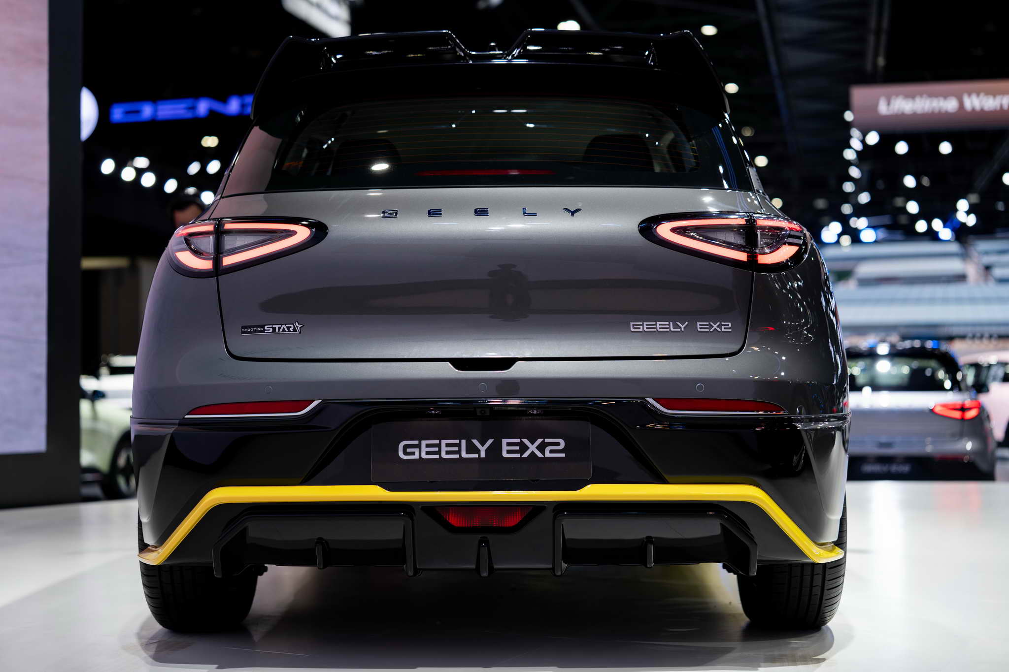 The GEELY EX2 Shooting Star special edition builds on China’s best-selling city EV. It features a full body kit, including front, rear, and side skirts, a sporty front design, and a rear spoiler.